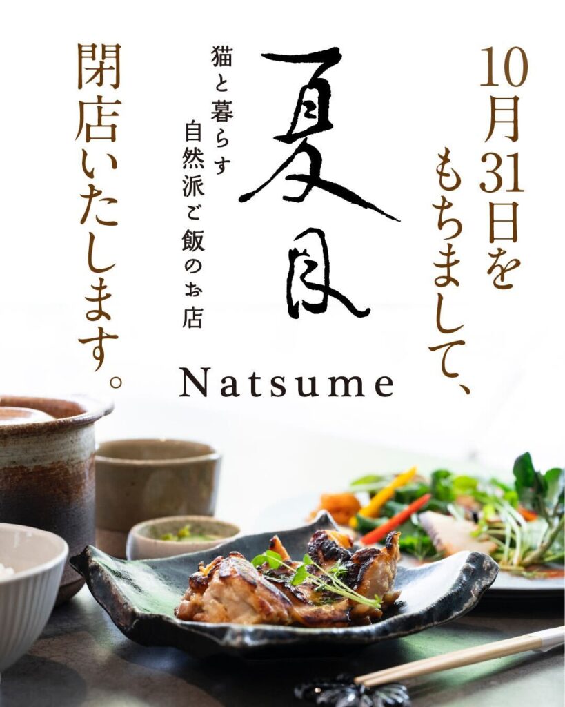 「猫と暮らす 自然派ごはんのお店 夏目」は、10月31日をもって閉店いたします。