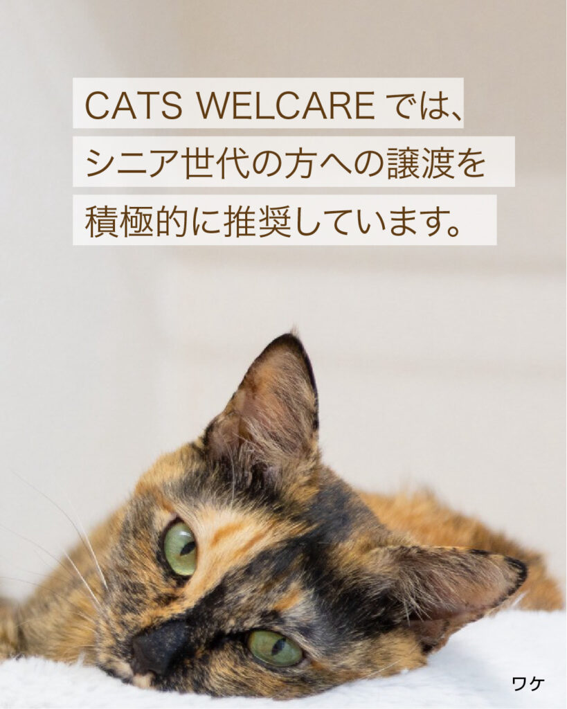 私たちは、シニア世代の方への譲渡を積極的に推奨しています。