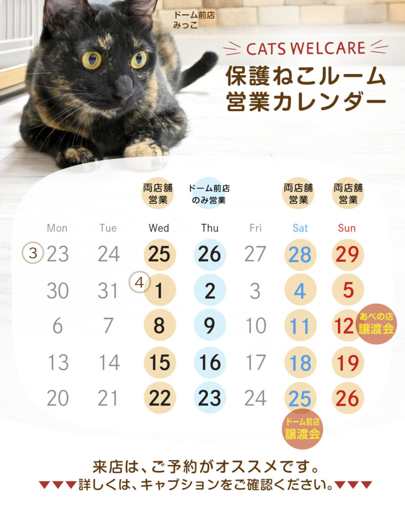 🐾 CATS WELCARE 保護ねこルーム営業カレンダー 🐾