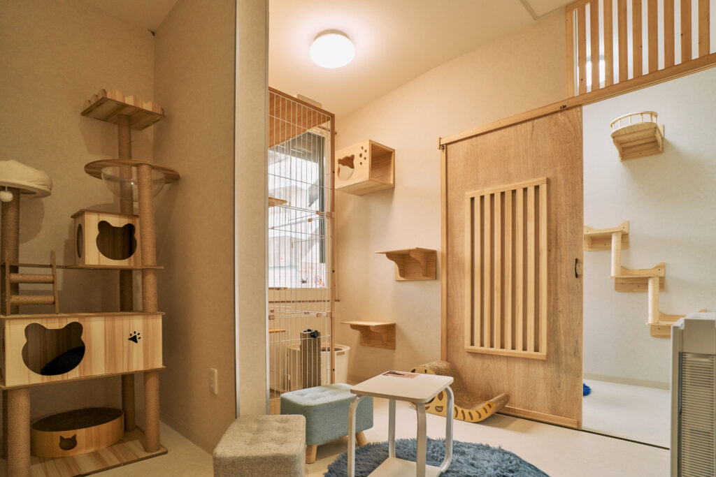 「ホーリーハウス」は、1階の和カフェ「夏目」と2階の「保護ねこルーム CATS WELCARE」が一体となった、新しい形の保護猫施設です。